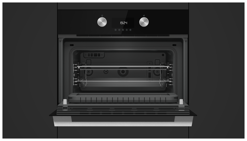 Материал внутренней поверхности — эмаль Slippery. Полезный объем для готовки — 44 л. В комплекте также есть решетка, с помощью которой можно разнообразить привычное меню. Понятное электронное управление не вызовет трудностей ни у кого из вашей семьи. Для изменения настроек или выбора программ используются следующие переключатели: сенсорные + поворотные.