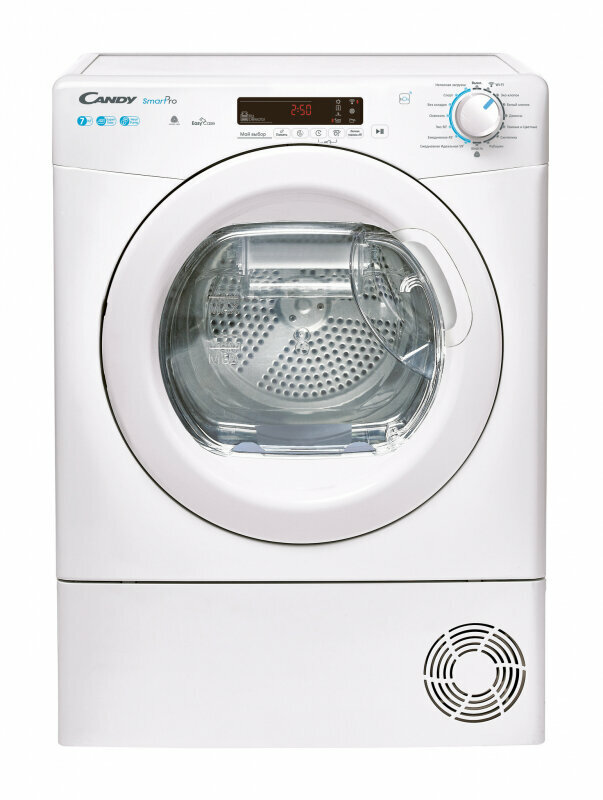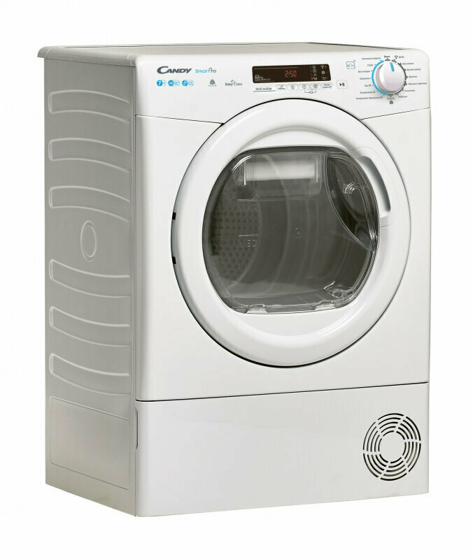 Сушильная машина Candy Smart Pro CSOE H7A2DE-07 имеет загрузку фронтального типа. Барабан оптимальной емкости позволяет загрузить в устройство до 7 кг белья. Люк открывается на 180°, что создает удобство при наполнении и выгрузке вещей. Благодаря высокочувствительному датчику остаточной влажности на внутренних стенках устройства не скапливается конденсат. Технология Smart Touch позволяет управлять моделью дистанционно посредством беспроводной связи Wi-Fi. Устройство имеет 14 автоматических программ, среди которых есть «Смешанное белье», «Спортивная одежда» и «Пуховые изделия».