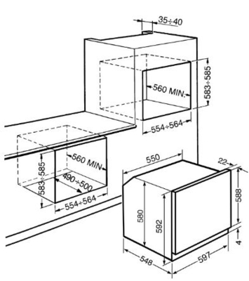 Некоторые модели духовок Smeg имеют полезный объем 72 л (79 л полный объем) - +35% к объему традиционной версии. Увеличение объема позволило увеличить количество уровней приготовления до 5.