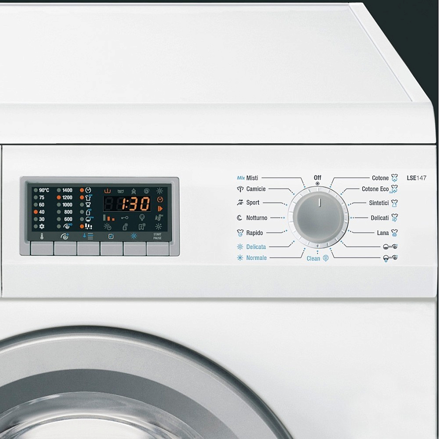 Стиральная машина Smeg с большой загрузкой белья. Предусмотрена опция FlexiTime — регулировка длительности программы стирки. Возможность подключения к горячей воде позволяет экономить до 35% электроэнергии.