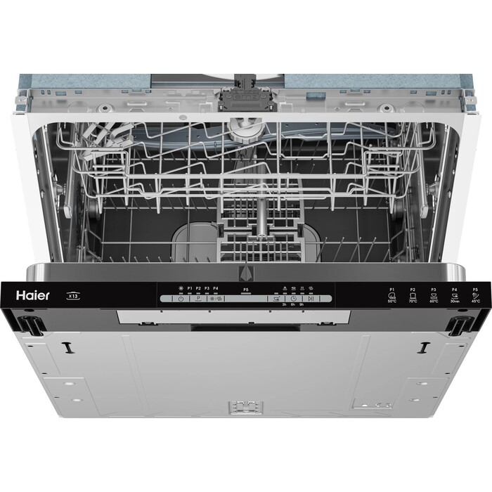 Встраиваемая посудомоечная машина Haier HDWE13-490RU с 2 корзинами, полкой для чашек и отдельным лотком для столовых приборов вмещает 13 комплектов посуды. С помощью кнопочной панели вы можете выбирать 1 из 5 программ мойки, запускать таймер отсрочки до 9 ч. Устройство дополнено режимами замачивания и сокращения длительности цикла.